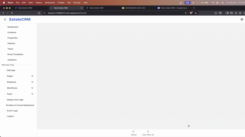 Install the Real Estate CRM Template from Fuzen’s app templates library.
